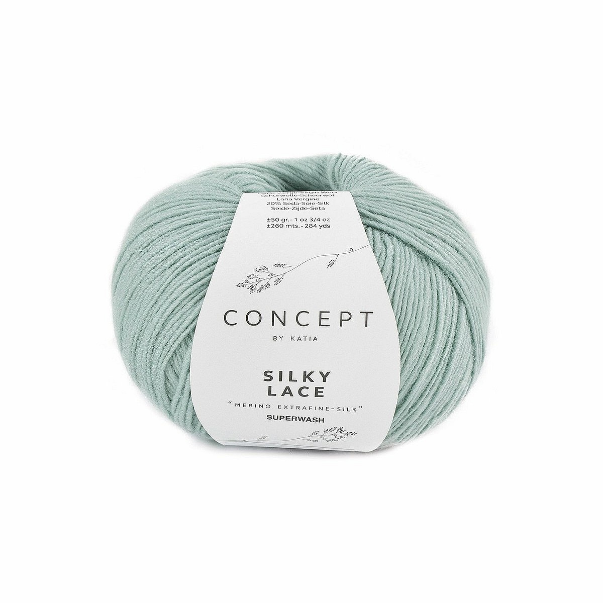 Silky Lace is a silky shiny yarn available in soft colours.